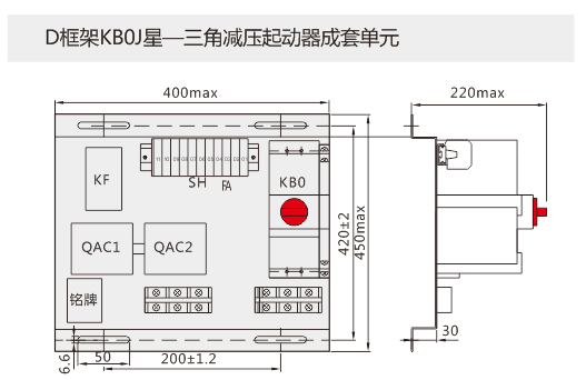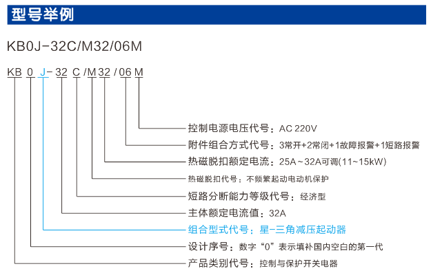 以KB0作為主開關(guān),與接觸器、時間繼電器、電氣聯(lián)鎖等附件組合,構(gòu)成Y-△減壓起動器成套單元KB0J(以KB0-F消防型產(chǎn)品作為主開關(guān),可構(gòu)成消防型Y-△減壓起動器成套單元KB0J-F)可實(shí)現(xiàn)110kW及以下的電動機(jī)的Y-△減壓起動控制與保護(hù)。