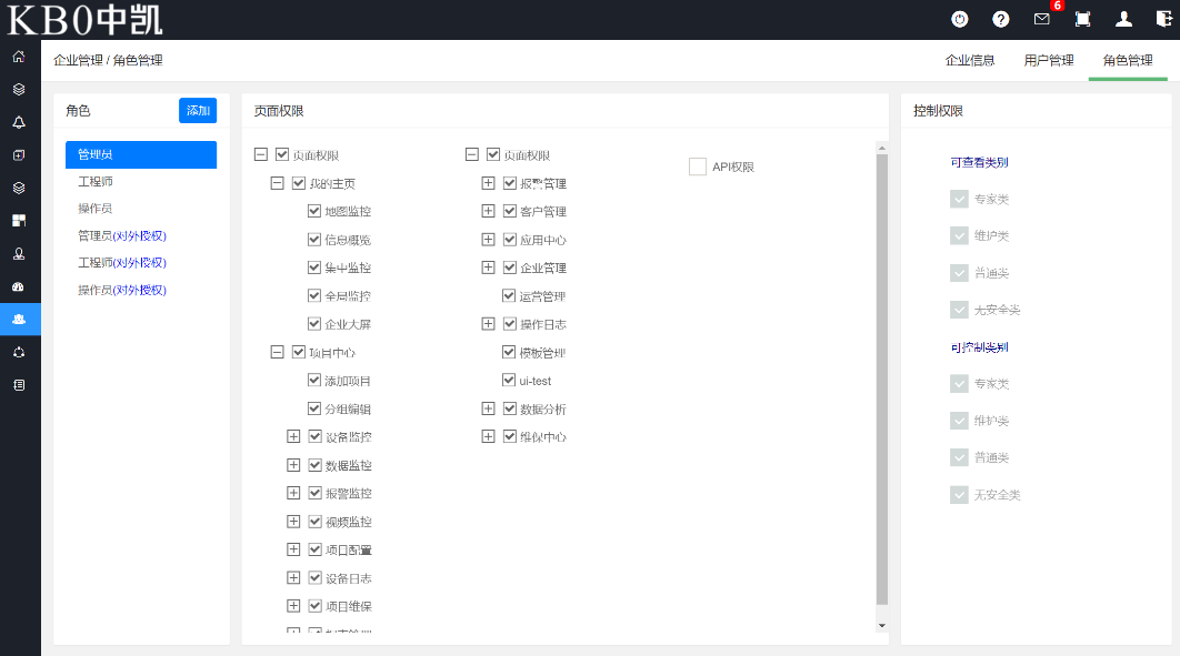 為確保能耗監(jiān)控系統(tǒng)可靠、有效且安全的運行,中凱能耗監(jiān)控系統(tǒng)提供全方位的權(quán)限管理機制,可根據(jù)系統(tǒng)訪問、操作級別,設(shè)置不同的操作管理權(quán)限。